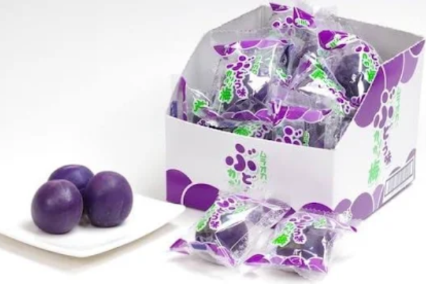 村岡食品が手がける新商品で、青梅の食感とぶどうの甘さが融合した話題のお菓子です。