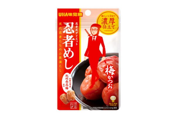 忍者めし梅かつおは、UHA味覚糖が手がけるハードグミで、紀州南高梅ピューレの濃厚な酸味とかつおの旨みをしっかり閉じ込めています。