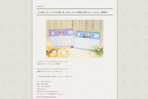📢「小公女セーラ」と「ロミオの青い空」のカレンダーが全国の100円ショップ『Seria』に再登場!